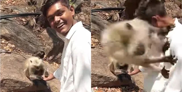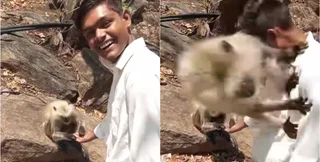 На кадрах можно увидеть, как мужчина снимает своего друга на камеру, когда тот кормит маленькую обезьянку из своих рук. Но позитивный настрой неизвестного быстро сменился на удивление.