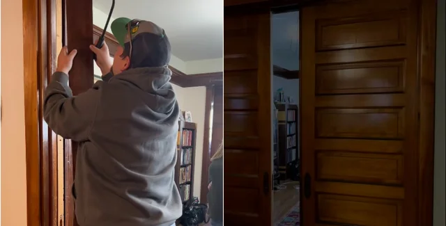 За старыми панелями скрывались старые выдвижные двери в стиле 1920-хх, которые сохранились в отличном состоянии. Владелица показала их в видео в TikTok.