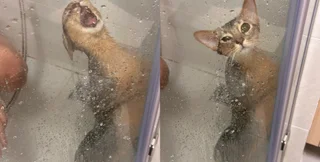 На популярном форуме Reddit появилось вирусное фото пушистого "смельчака", который в панике кричит в душе и отчаянно пытается выбраться.
