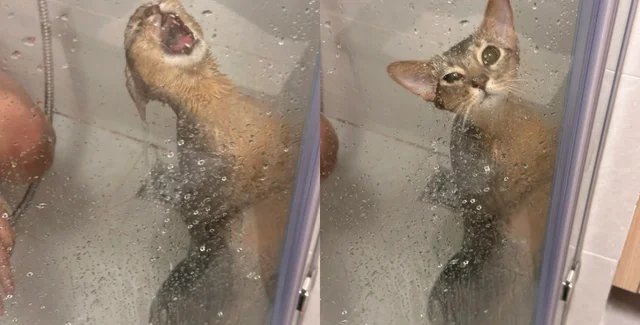 Домашняя кошка, которая сама захотела, чтобы хозяин искупал ее, мгновенно пожалела о своем решении и стала новой героиней соцсетей.