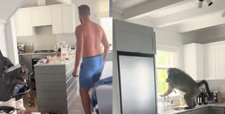 Ролик с курьезом стал вирусным — набрал более 5,8 млн просмотров. На видео видно, что как мужчина заходит на кухню и кричит "go, get!" в сторону невидимого сначала нарушителя, а через мгновение становится понятно — на столе сидит бабуин с фруктами в руках и во рту.
