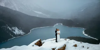 Канадская пара Мелисса и Девон решили провести необычную фотосессию в Национальном парке Банфф. Однако самыми большими проблемами стали не макияж или свет, а погода и холод на вершине одной из гор.