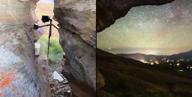 Мужчина снял невероятный ночной горизонт на камеру, оставленную в пещере горы | Фото: коллаж Фокус