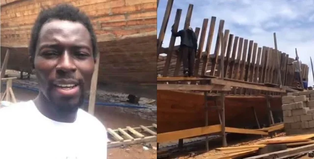 На роликах мужчина, представленный как "Пророк Эбо Ной" или "современный Ной", наблюдает за строительством огромного деревянного судна. Автор публикаций утверждает, что Бог якобы предупредил его о глобальном потопе, который должен начаться 25 декабря 2025 года и продолжаться три года.