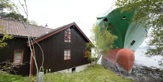 Житель Норвегии Йохан Хельберг начал утро, встретив неожиданного "гостя". Огромный контейнеровоз сел на мель и остановился всего в нескольких метрах от его дома.
