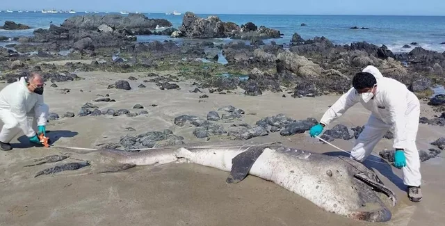 Акулу длиной 13,7 метра обнаружили в среду между пляжем Гавиотас и рыбацким городком Ясила в регионе Пиура. Эксперты Перуанского морского института подтвердили, что это акула-мегамоуф (Megachasma pelagios).