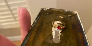 На первый взгляд украшение выглядело ценным, ведь металл напоминал золото, а камень рубин или гранат. Супруги также предположили, что предыдущие жилье дома намерено спрятали драгоценность или же это могла быть простая детская шалость.