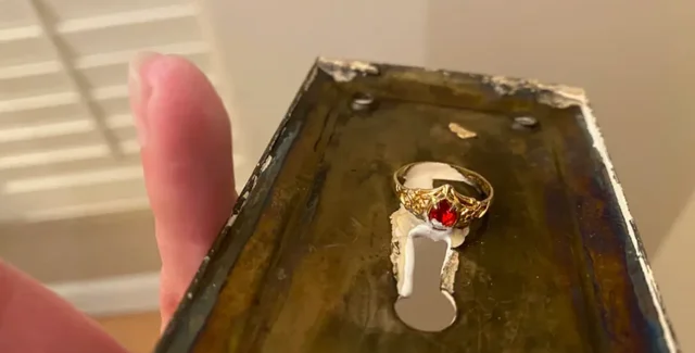 Именно во время очистки одной из дверных накладок супругов ждал сюрприз. Внутри оказалось приклеенное кольцо.