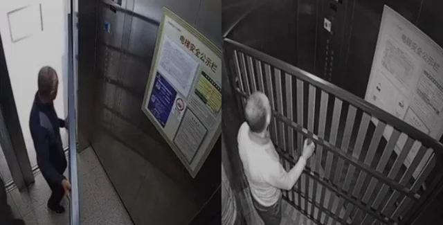 На кадрах видно, как пенсионер заходит в лифт в 8:50, а через минуту он возвращается с огромным каркасом кровати. Когда китаец пытался втиснуться в пространство лифта, то двери внезапно закрылись, а металлический каркас застрял между дверью и стеной кабинки.