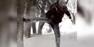 Мужчина решил проверить дерево: снег проверил его в ответ (видео)