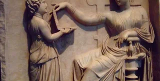 Археолог Кристина Килгроув в статье для Forbes еще несколько лет назад подробно разобрала этот миф. Она объяснила, что подобные стелы часто показывали умерших женщин в домашней обстановке, подчеркивая их статус и благополучие семьи.