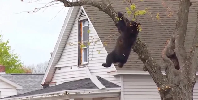 Журналисты пишут, что инцидент произошел 21 апреля в городе Олбани, столице штата Нью-Йорк. Один из местных жителей заметил, как на дерево вблизи его дома залез черный медведь, однако животное не может никак спуститься.