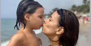Лонгория и ее шестилетний сын Сантьяго проводят время в Марбелье, загорая под летним солнцем.
