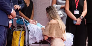 Как видно на кадрах, мужчину привезли на каталке, чтобы он смог увидеть любимую звезду. Энджи наклонила к нему голову и улыбаясь, что-то говорила. Затем она поднялась и отправилась в кинозал, где начинался показ картины.