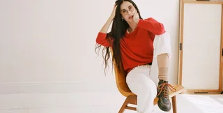 На снимках Мур позирует в уютных, но шикарных ансамблях. В одном из кадров Деми демонстрирует красный свитер, белоснежные брюки и пару походных ботинок.