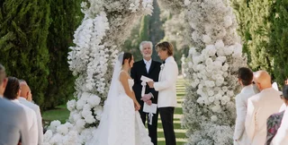 На снимках пара обменивается клятвами под красивой цветочной аркой, а на актрисе платье от дизайнера Галии Лахав. Она завершила свой образ изящной вуалью от Monvieve, которая прекрасно перекликалась с замысловатыми узорами платья. Чтобы не отвлекать внимание от наряда, девушка надела минимум украшений и макияжа. На вечерних торжествах она щеголяла в атласном платье с открытыми плечами.