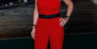 Кейт продемонстрировала потрясающую фигуру в эффектном красном комбинезоне с американской проймой и широкими брюками. Звезда "Дороги перемен" подчеркнула талию широким черным поясом и дополнила свой яркий образ парой туфель на высоких каблуках. Уинслет уложила длинные светлые локоны в аккуратную волнистую прическу и нанесла вечерний макияж. Из украшений на ней были ослепительные золотые серьги-капли, несколько колец и браслетов. Кейт с удовольствием позировала фотографам и раздавала автографы поклонникам.
