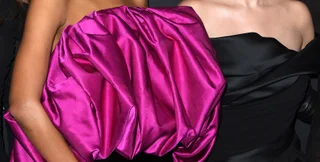 46-летняя звезда "Аватара" Зои Салдана появилась в черном платье приталенном бархатистом платье с пышной пурпурной верхней частью и прорезными карманами. В макияже актриса использовала косметику нежно-розового оттенка, которая дополняла ее платье. В качестве украшений Зои выбрала шикарный комплект усыпанный бриллиантами, состоящий из массивного кольца и красивых сережек. На звездной красной дорожке к ней присоединился ее муж Марко Перего.