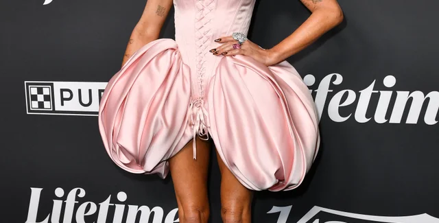 51-летняя звезда выглядела невероятно в необычном мини-платье, состоящем из кружевного корсета и "театральной" пышной юбки. Кейт дополнила свой гламурный образ парой розовых босоножек на высокой платформе, украшенных декором в виде розы. Бекинсейл уложила волосы в высокий хвост, украсив его стильным черным бантом. Из украшений звезда надела эффектный комплект, состоящий из массивных сережек и кольца, усыпанных бриллиантами.