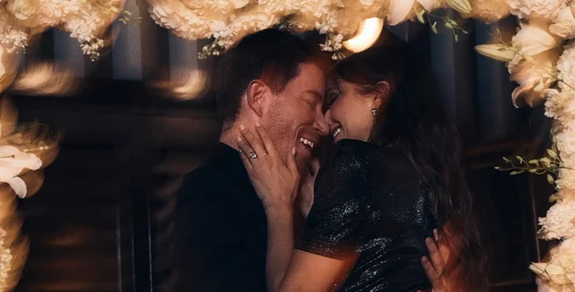 Он обманом заставил Нину подумать, что ее пригласили на ужин Vogue/CFDA с Анной Винтур в Golden Swan в Нью-Йорке, но когда актриса поднялась по лестнице, то увидела возлюбленного под белой цветочной аркой с лепестками роз и свечи, расставленные по всей комнате.