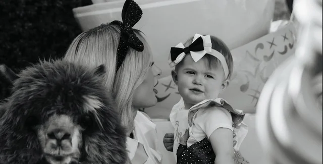 На фото появилась как сама маленькая именинница, так и ее старший братик Феникс. Дети Хилтон и гости вечеринки позировали на черно-белых кадрах.
