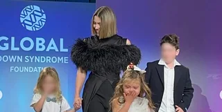 Бил держалась за руки со своими сыновьями, когда они вместе шли по подиуму. К ним также присоединилась племянница Джессики, пятилетняя Зая, которая имеет синдром Дауна.