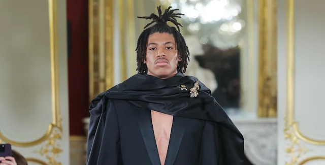 19-летний юноша дебютировал на подиуме, когда он шел на показе Lena Erziak Haute Couture весна-лето 2025 в отеле le Marois на Парижской неделе моды в столице Франции.