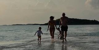 На одном из фото Гир общается с детьми, а на других позирует с женой и сыновьями на пляже.