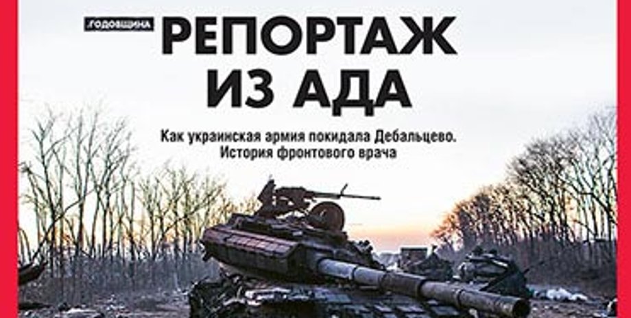 "Колона вишикувалася й повільно, ривками почала рух у бік вільної України. Ми покидали Дебальцівський плацдарм, який тримали півроку й за який билися до останнього". На обложке Фокуса анонс репортажа о выходе из Дебальцева в феврале 2015-го. Это проникновенный репортаж о девяти днях жизни, смерти, окопной хирургии, войне и окружении — глазами фронтового врача Александра Данилюка