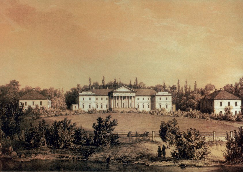 Дворец в Верховне. Имение Ганских в середине XIX века (художник Наполеон Орда) и сейчас