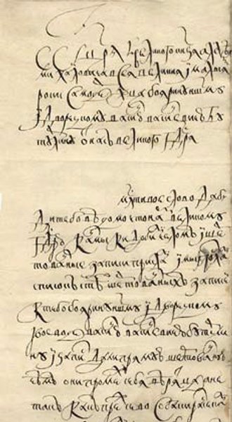 ЦАРСКАЯ МИЛОСТЬ. Грамота царя Алексея Михайловича о пожаловании Василию Бутурлину дворянского титула, шубы, соболей и прибавки к окладу за Переяславскую Раду. 1655 год