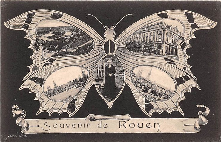 Помните, не так давно чуть ли не в каждом свадебном альбоме страны было фото: жених "держит" на ладони крохотную невесту? Вот и среди фотографов прошлого тоже свирепствовали эпидемии модных шаблонов. Один из них — серия "Пролетом через…". В начале ХХ века почти над всеми крупными городами мира, от Вашингтона до Варшавы, вспорхнули женщины-бабочки. Образ бабочки вообще был крайне популярен в эпоху ар-нуво (модерна, югендштиля, сецессии — можете называть этот стиль как вам нравится).