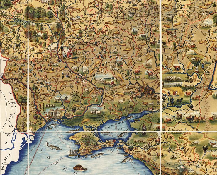 Хлеборобы. Увлечения украинцев видно с наглядной карты "Европейской России" 1903 года, фрагмент