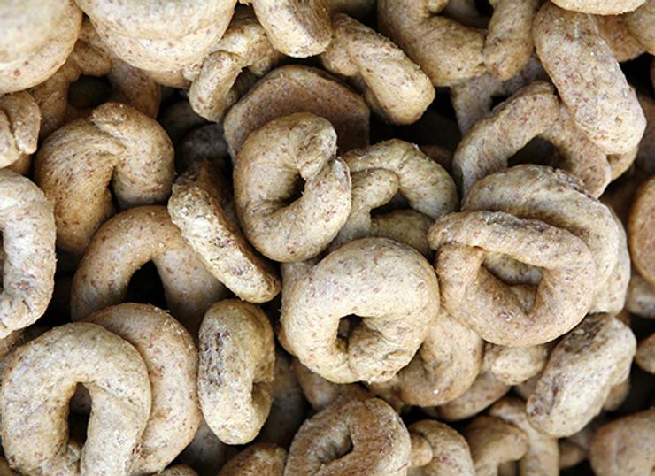 Приготовление: растворите мед в виноградном соке, смешайте с маслом. Добавьте муку и разрыхлитель, замесите тесто и дайте ему подойти около часа. При замешивании в тесто можно добавить семена аниса. Когда тесто готово, сформируйте из него бублики. Разогрейте духовку до 180 градусов и выпекайте сладости, пока они не станут золотистыми (15–20 минут). Перед подачей полейте медом.