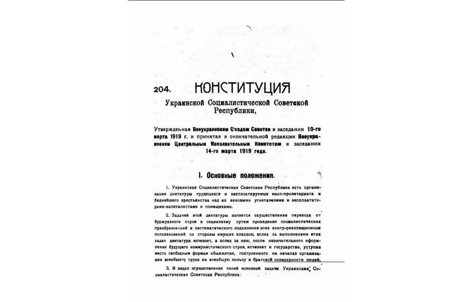 Первой реальной украинской конституцией стала конституция советская, принятая на Третьем Всеукраинском съезде советов 99 лет назад – 10 марта 1919 года. Кроме того, она была единственной из всех советских конституций, принятой при относительном соблюдении демократических процедур, а прописанная в ней форма государственного устройства не имела аналогов в мире (за исключением "красной" России, где подобную конституцию приняли в июле 1918 года).