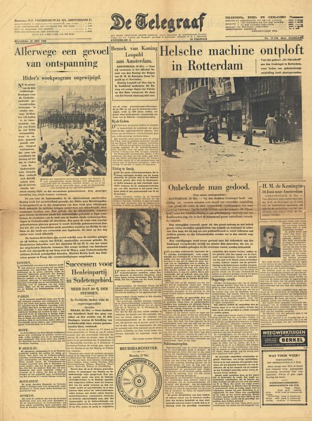 Историк тщательно изучал все материалы, касающиеся взрыва в Роттердаме в 1938 году, и собрал собственный архив. Самое ценное — это копии голландских газет, потрясенных громким терактом.