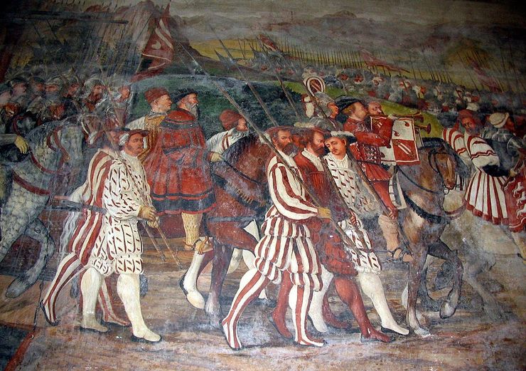 Кондотьеры на марше. Фрагмент фрески в замке Мальпаго