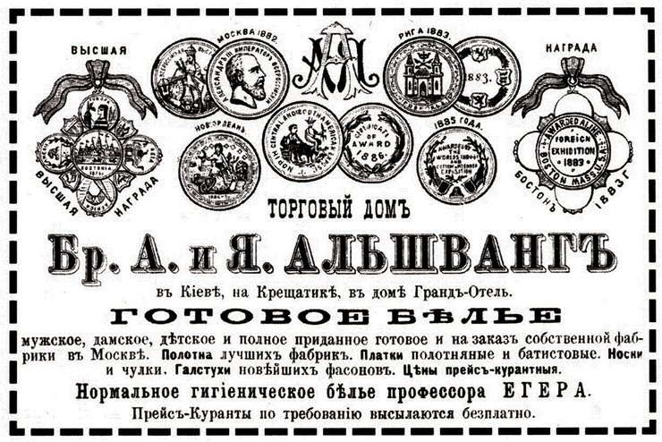 Находились и фальшивые "медалисты", писавшие что-то вроде: наша продукция "заслужила три золотые медали" (без конкретики — какие именно, каких выставок, в каком году). Да и адрес псевдолауреата выглядел, как правило, довольно заурядно, например: "В конце Троицкого базара" (то есть на самом деле речь шла о скромном базарном рундуке).