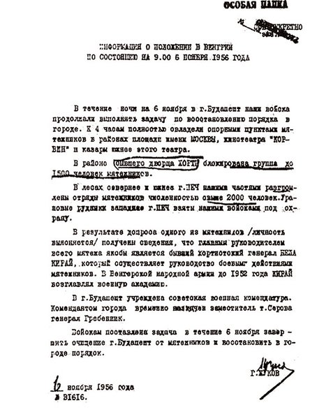 Жуков информирует о ходе боевых действий в Венгрии. 6 ноября 1956 г.