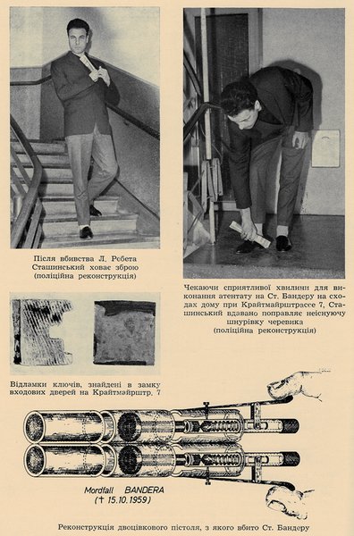 Весной 1958-го Сташинский получает задание провести еще одно "специальное мероприятие". Ему выдают обновленную версию пистоля с двумя стволами — на тот случай, если придется стрелять и в телохранителя Бандеры Василия Сколоздру, известного под псевдонимом Ниновский. Однако получилась осечка. Агент выследил Штефана Попеля (паспорт на такое имя имел Бандера) возле его дома на Кройтмаерштрассе, но в какой-то момент не решился на выстрел и ушел.