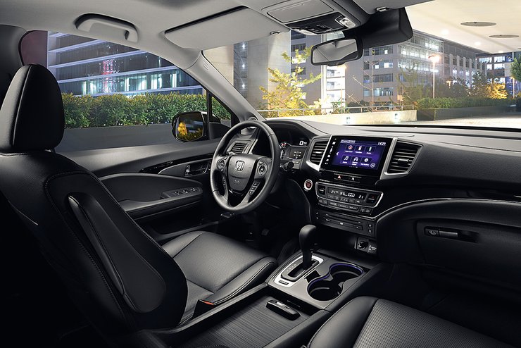 Дизайн интерьера Pilot японцы создавали с чистого листа. Внутри очень много свободного места. Огромное расстояние между передними сиденьями позволяет использовать бокс для вещей в качестве столика. А чтобы водителю и переднему пассажиру было максимально комфортно, предусмотрены индивидуальные складные подлокотники.