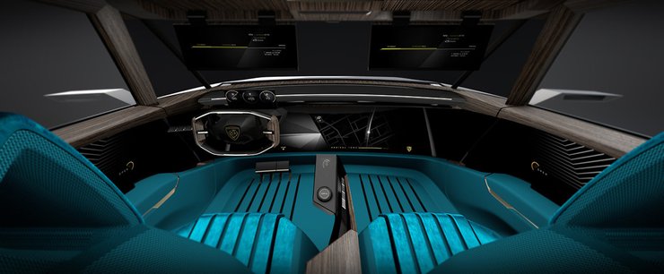 В салоне, отделанном велюром, тканью и деревом, скрывается 16 дисплеев разной величины. На передней панели размещается изогнутый 49-дюймовый экран. Мониторы можно найти даже на дверях (диагональ – 29 дюймов) и солнцезащитных козырьках (диагональ – 12 дюймов).