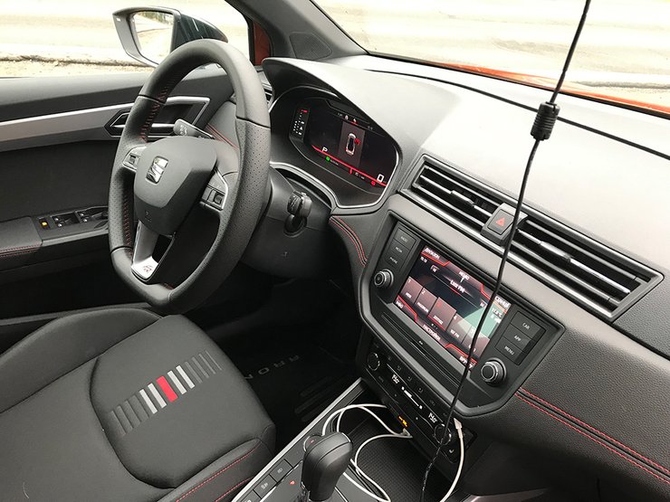Из всего актуального модельного ряда SEAT именно Arona, на мой субъективный взгляд, обладает самым ярким дизайном. Во всяком случае, предоставленная нам на тест "заряженная" версия FR – это автомобиль с явными спортивными замашками и стремлением выделиться из толпы. Четкие и динамичные линии кузова, двухцветный окрас, накладки на бамперы, 17-дюймовые легкосплавные диски, хромированные рейлинги, имитация двойного выхлопа – Arona FR не скупится на эмоции. Дерзкие нотки весьма удачно звучат и в интерьере. D-образный маленький руль, спортивные сидения с красной строчкой – эта машина призвана создавать настроение: яркое, солнечное, как та страна, откуда она родом.