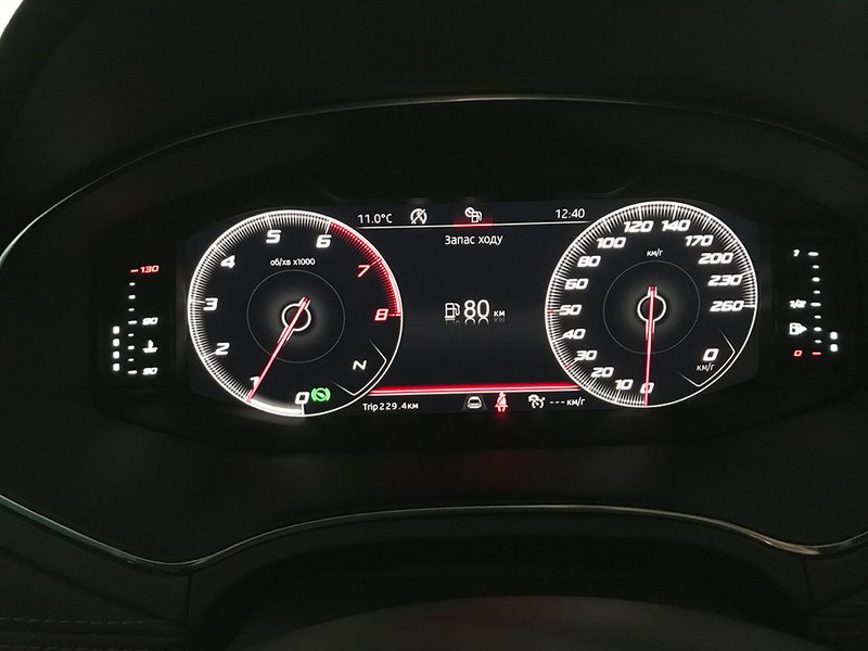 Цифровой дисплей приборной панели крупный и яркий. Его вид (аналоговые приборы либо красивая картинка с вашим автомобилем и основными показателями поездки) легко меняется кнопкой на руле. Атмосферу современного авто создает и фоновая подсветка в салоне, цвет которой можно выбирать в меню.