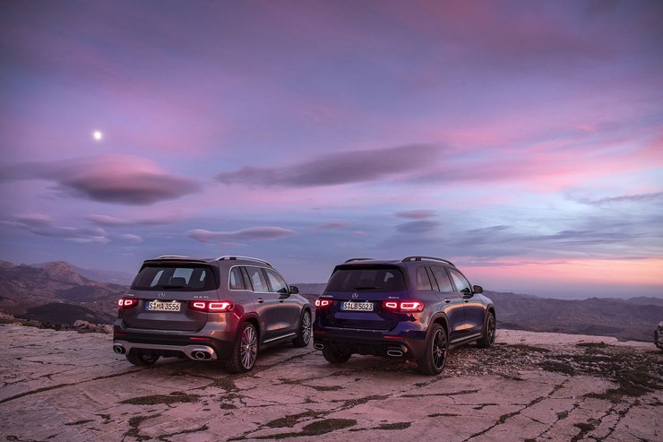 Мощные пропорции GLB подчеркивают дизайн, ориентированный на бездорожье. Вертикальная передняя часть кузова с эффектными фарами головного освещения указывает на присутствующие здесь "гены" внедорожника, как и короткие свесы спереди и сзади.