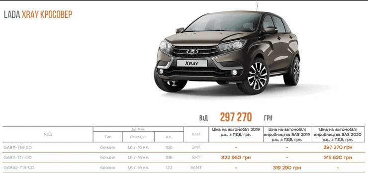 Так, в Украине стали официально продавать Lada Granta, Lada XRay, Lada Largus, а также Lada Vesta Sedan и SW Cross. На данный момент на сайте нет цен, но примечательно, что указан курс рубля к гривне.