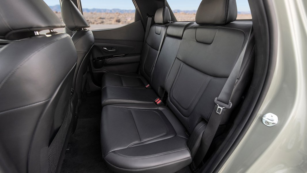 В салоне — знакомые по Тусану элементы: цифровая приборная панель с дисплеем диагональю 10,25 дюйма, сенсорный экран медиасистемы аналогичной диагонали, сенсорный блок климат-контроля, центральная консоль без физических клавиш. Однако селектор трансмиссии — не кнопочный пульт, как у Tucson, а традиционный рычаг.
