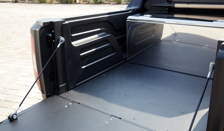 При необходимости в этом пикапе можно перевезти до 675 кг полезного груза, а также предметы длиной до 1,79 метра. Можно еще длиннее — если откинуть задний борт. Тем, кому комплектация новинки покажется скудной, за доплату предложен целый ящик дополнительного инструмента и аксессуаров. И даже штыковая лопата.