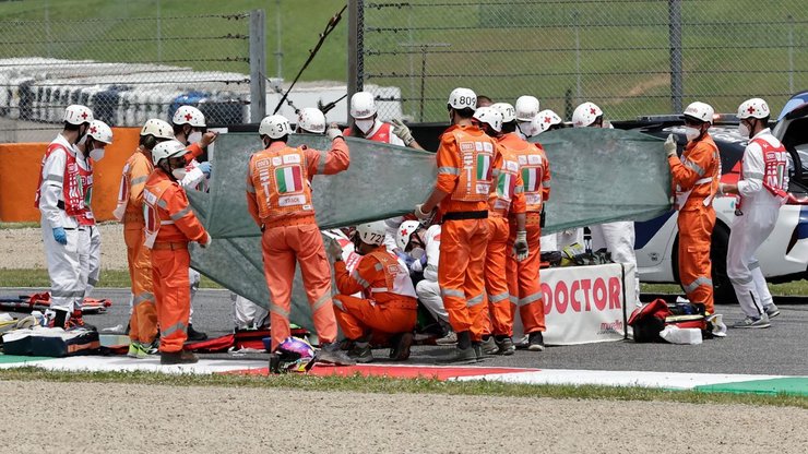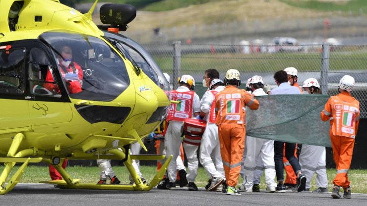 А вот с Дюпаскье медики в течение получаса работали непосредственно на трассе, чтобы стабилизировать его состояние. После этого он был доставлен вертолетом в госпиталь Флоренции. На момент госпитализации состояние Дюпаскье оценивалось как очень тяжелое.