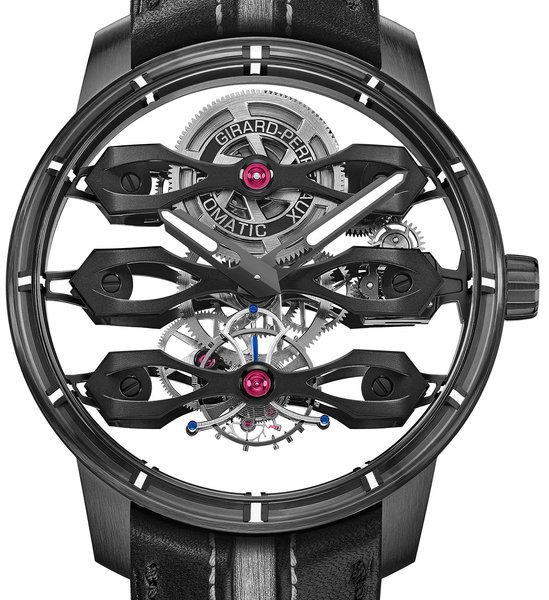 Под сапфировым стеклом в 44-миллиметровом титановом корпусе скрывается механизм, состоящий из 79 деталей, общий вес которого составляет 250 мг, а самая крупная деталь — всего 10 мм в диаметре. Водонепроницаемость часов — всего 30 метров, но в Girard-Perregaux логично предположили, что вряд ли кто-то из владельцев будет нырять глубже, не снимая их с руки.